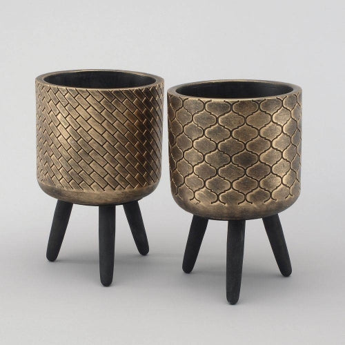 Sold outGrey & Gold Designed Tripod Planter